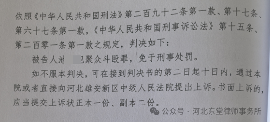 聚众斗殴案中抓住关键点辩护为被代理人争取到免于刑事处罚