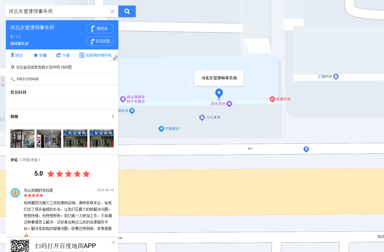 地址:雄安新区(容城县)奥威路66号1,6层 网址:www.dongtanglaw.com驾车线路:通过高德地图、百度地图、腾讯地图搜索“河北东堂律师事务所”即可导航。